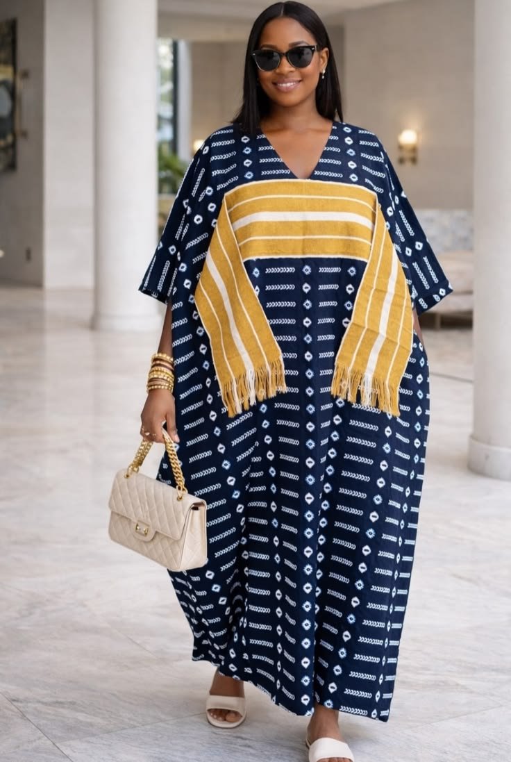 Made with beautiful adire materials. Kaftan comes with matching scarf and for all occasions